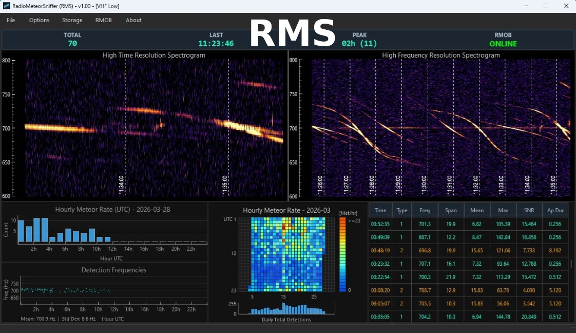 The RMOB is an independent initiative of some workers in the field of radio meteor scatter observations and data reduction. It started in August 1993 in order to spread the Perseid results via E-mail. Since then, it has appeared monthly, and it has gradually been expanded. In regularly publishing summaries of observations, potential radio observers are kept up to date of existing installations, possibilities and limitations of radio meteor observations. In the long run, there should be sufficient observing stations to cover the whole globe, allowing to detect stream outbursts which may remain unnoticed visually. RMOB contains typically: summaries of previous month's observations, equipment data, first results of stream activity by radio methods, relations between radio and optical meteors, references to other publications in the field of meteor astronomy and radio scatter techniques, announcements of meetings, short questions and answers, links to interesting web sites. Contributors are mentioned, and interested persons are asked to contact them directly. RMOB can be copied freely in unabridged and unmodified form. Extracts should indicate the source (Radio Meteor Obs Bulletin, month and year). Please follow us on Facebook RMOB GROUP